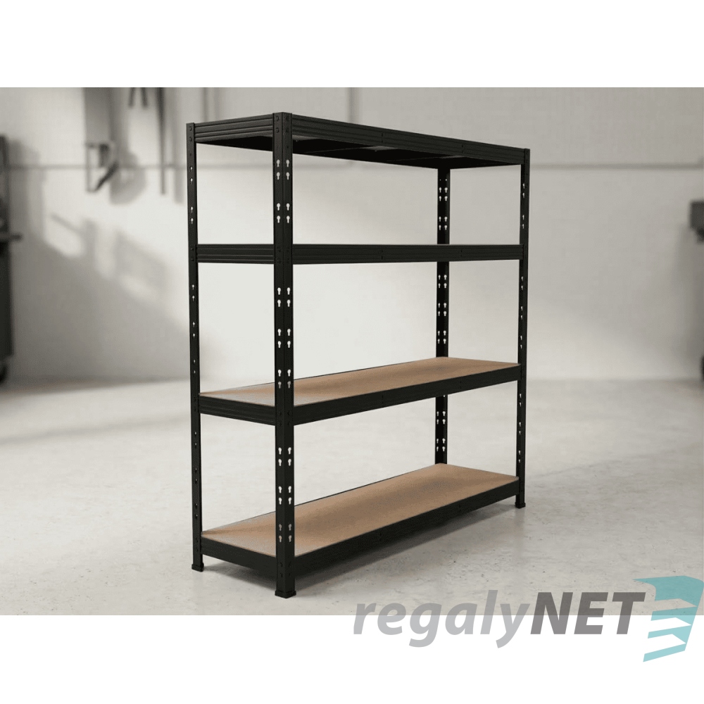 4 - policového lakovaného regálu 180x120x60 450 kg na polici , police dřevotřískové . Policový regál vyniká vysokou nosností, pevností a odolnostíBarva -  černa .