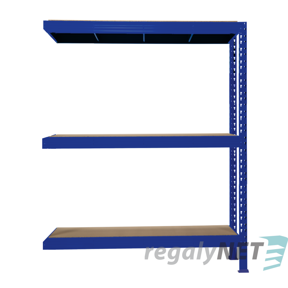 Nekonečný průmyslový regal 3 - policový s lakovanou kovovou konstrukcí, policemi z DTD s nosností jedné police 800 kg. Lze napojovat na sobě. Hlavní modul + doplňkový modul .