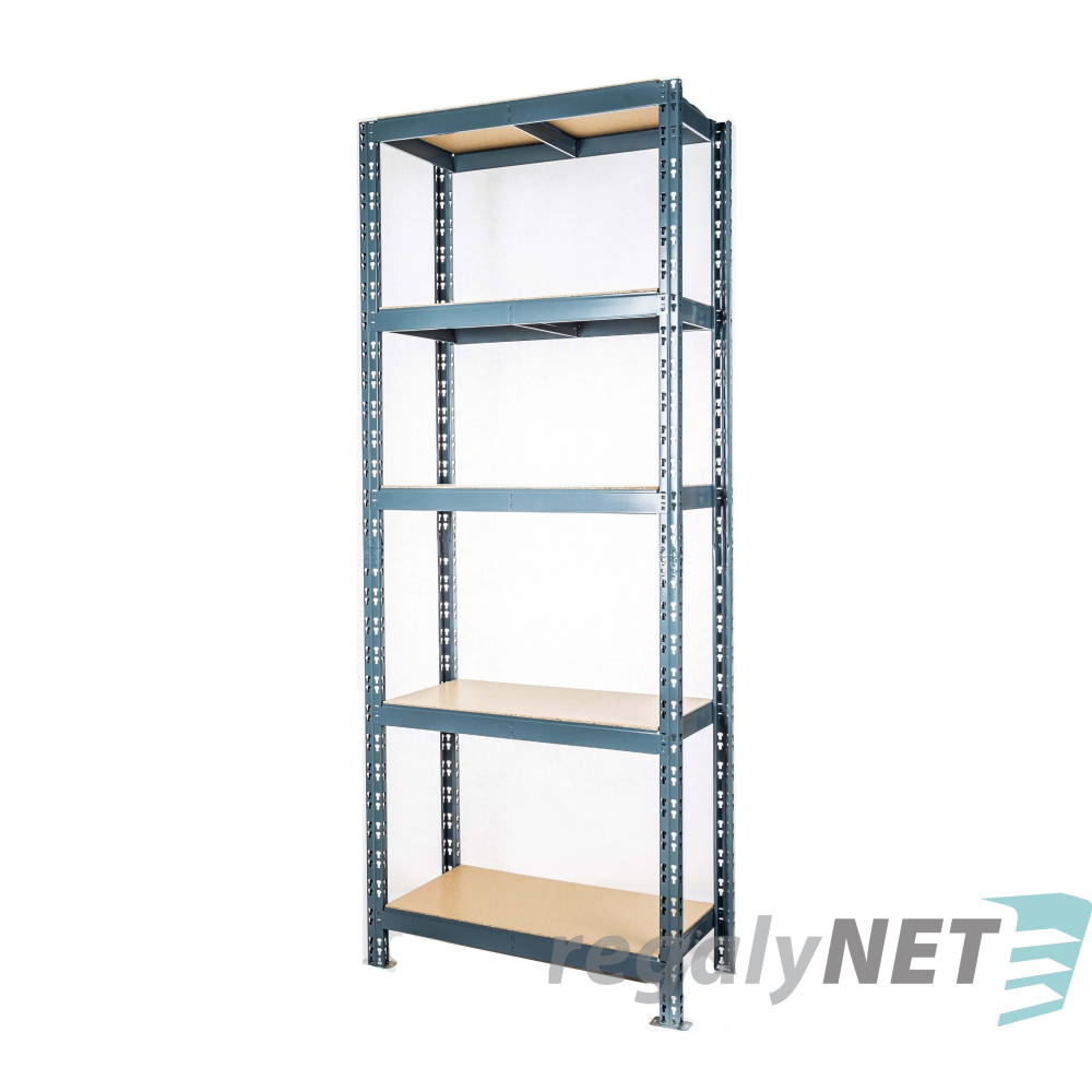 Nekonečně skladovací regaly 5-policový s lakovanou kovovou konstrukcí, policemi z DTD s nosností jedné police 200 kg. Lze napojovat na sobě. Hlavní modul + doplňkový modul .