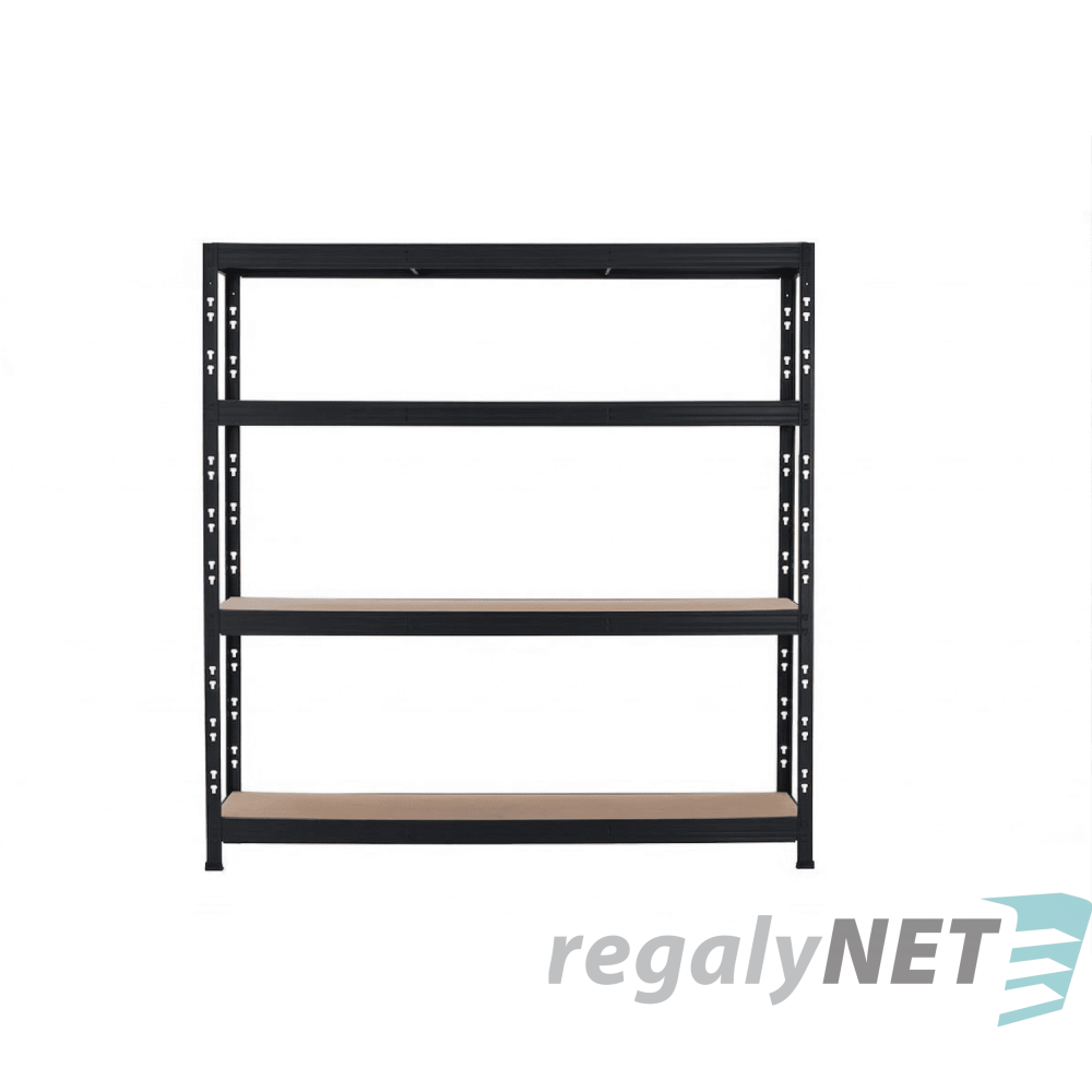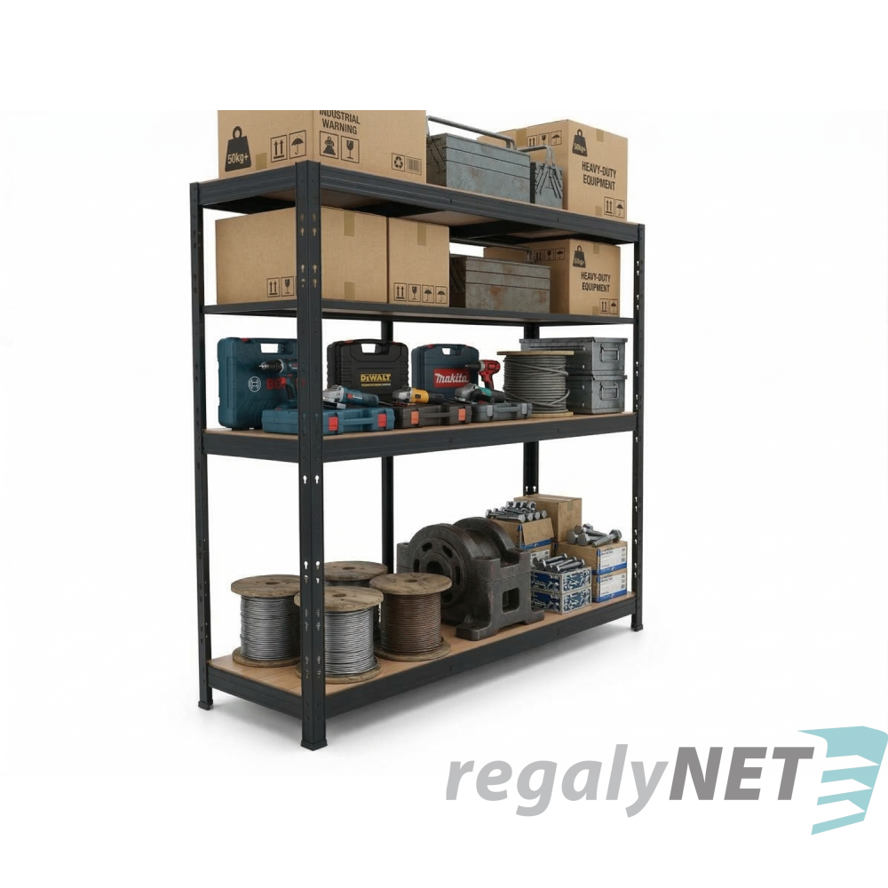 4 - policového lakovaného regálu 180x120x60 450 kg na polici , police dřevotřískové . Policový regál vyniká vysokou nosností, pevností a odolnostíBarva -  černa .