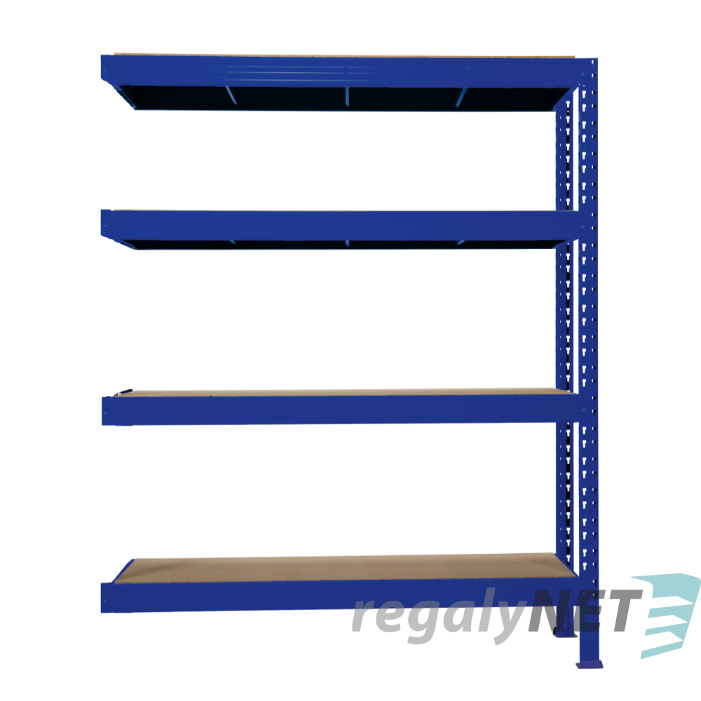 Doplňkový nekonečný průmyslový regal 4 - policový s lakovanou kovovou konstrukcí, policemi z DTD s nosností jedné police 800 kg. Lze napojovat na sobě. Doplňkový modul + Hlavní modul .